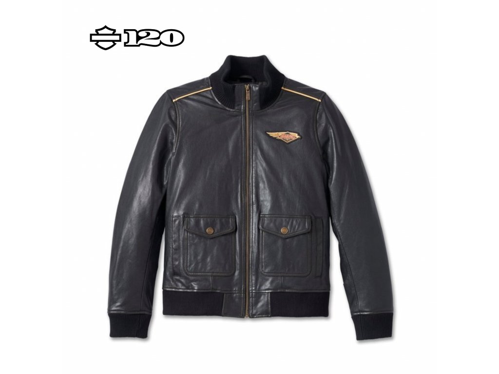 Legendárny štýl spolu s históriou 120-tého výročia v tejto dámskej koženej Bomber bunde Harley-Davidson®. Vyrobená z kozej kože strednej hmotnosti s hladkou saténovou podšívkou, má vnútorné vrecko na nevyhnutné drobnosti a veľkorysý rebrovaný golier, manžety a pás, aby si držali svoj tvar. Táto dámska bunda typu bomber zaujme svojím kontrastným zlatým lemovaním a našou úžasnou značkou k 120. výročiu a vyšívanou grafikou. • Materiály: kozia koža strednej hmotnosti. 100% saténová podšívka. • Zapínanie: zips vpredu. • Vrecká: predné vrecká so zapínaním na patentky. Spevnené vrecká na ohrievanie rúk so skrytým zapínaním na patentky. Vnútorné vrecko. • Dizajnové detaily: Kontrastný lem. Golier, manžety a pás z rebrovaného úpletu. • Grafika: vyšívané 120th Anniversary Logo.Diskusia