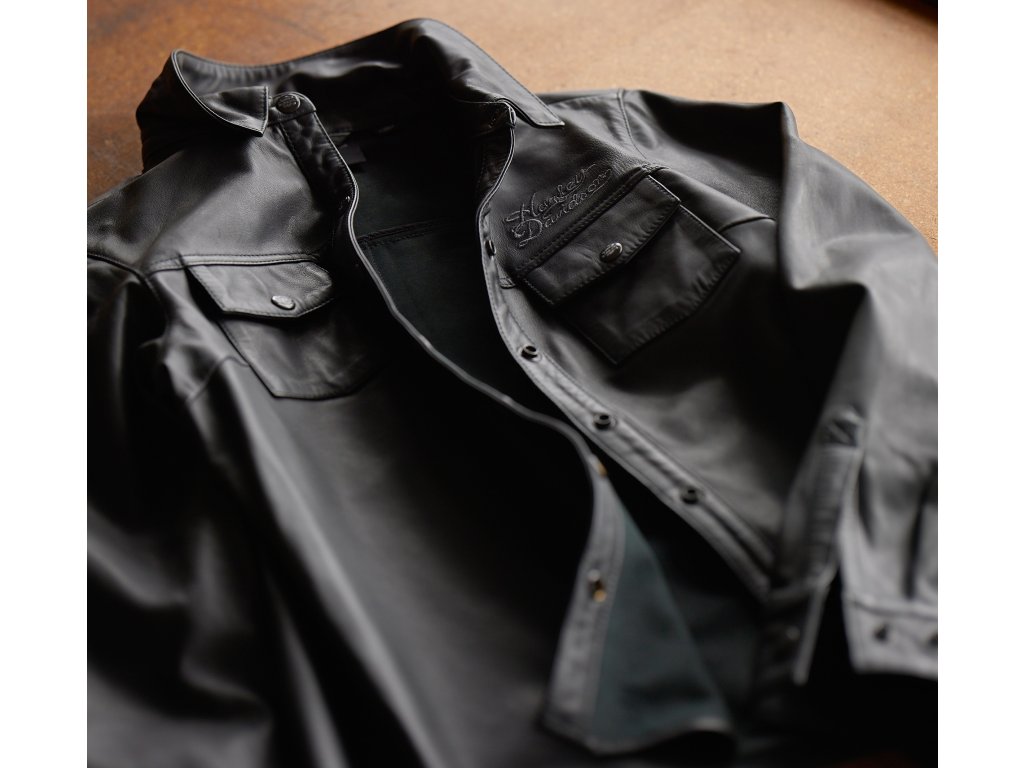 Dámska kožená košeľa so zapínaním na patenty aj na náprsných vreckách a rukávoch. Nápis Harley-Davidson® vyšitý vpredu nad ľavým naprsným vreckom a grafika orla a loga Harley-Davidson® potlačená vzadu na chrbte. farba: čierna, materiál: 100% jahňacia kožaBuďte prvý, kto napíše príspevok k tejto položke.