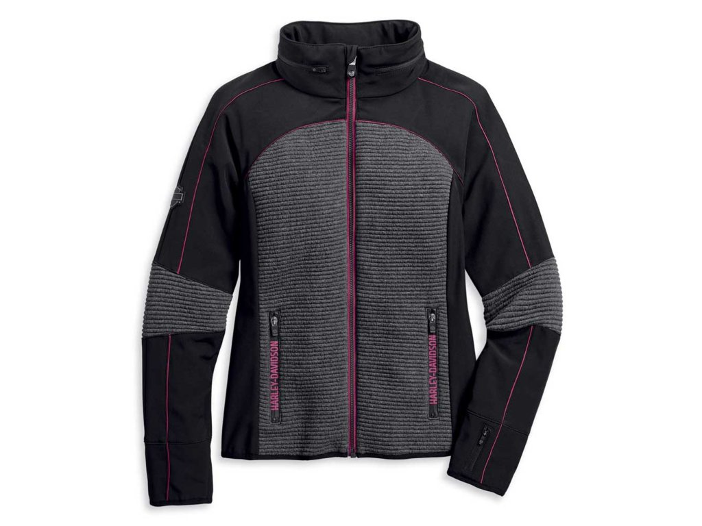 Pletená bunda Mixed Media so zmiešanými textúrami je pohodlná v akcii alebo v prestojoch. Spojenie panelov z rebrovaného úpletu s mäkkou škrupinou vyvrcholí úplným pohodlím, strečom a športovým štýlom. Táto dámska ležérna bunda obsahuje unikátny zips, ktorý je navrhnutý tak, aby Vám pomohola s káblom na média ktorý sa Vám nezamotá. Materiály: 63% Polyester, 36% Bavlna 1% Spandex Rebrovaný úplet Jacquard body. 91 % polyester, 9 % spandex štvorsmerne strečové mäkké škrupinové boky, rukávy a predné/zadné strmene. Predný zips s ťahom určeným na uchytenie mediálneho kábla. Vrecká na ohrievanie rúk na zips. Vrecko na zips na kľúče na manžete.Diskusia