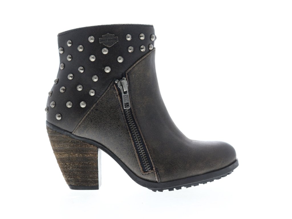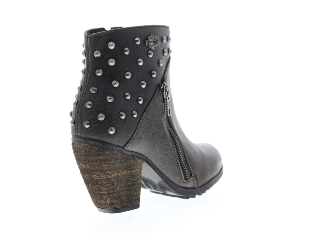 Harley-Davidson dámske kožené topánky Wexford sú vybavené ošúchanou lícnou kožou, kovovými cvočkami a kovovým logom pre jedinečný vzhľad. • ZVRŠOK: Koža • PODŠÍVKA: Koža • YKK® zips na vnútornej strane • PODRÁŽKA: Guma • Celková výška topánky cca 18 cm / Výška podpätku: cca 7,5 cm