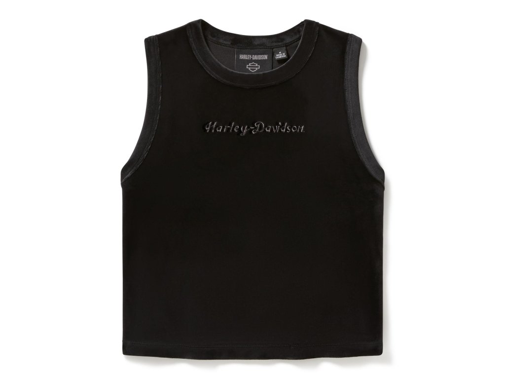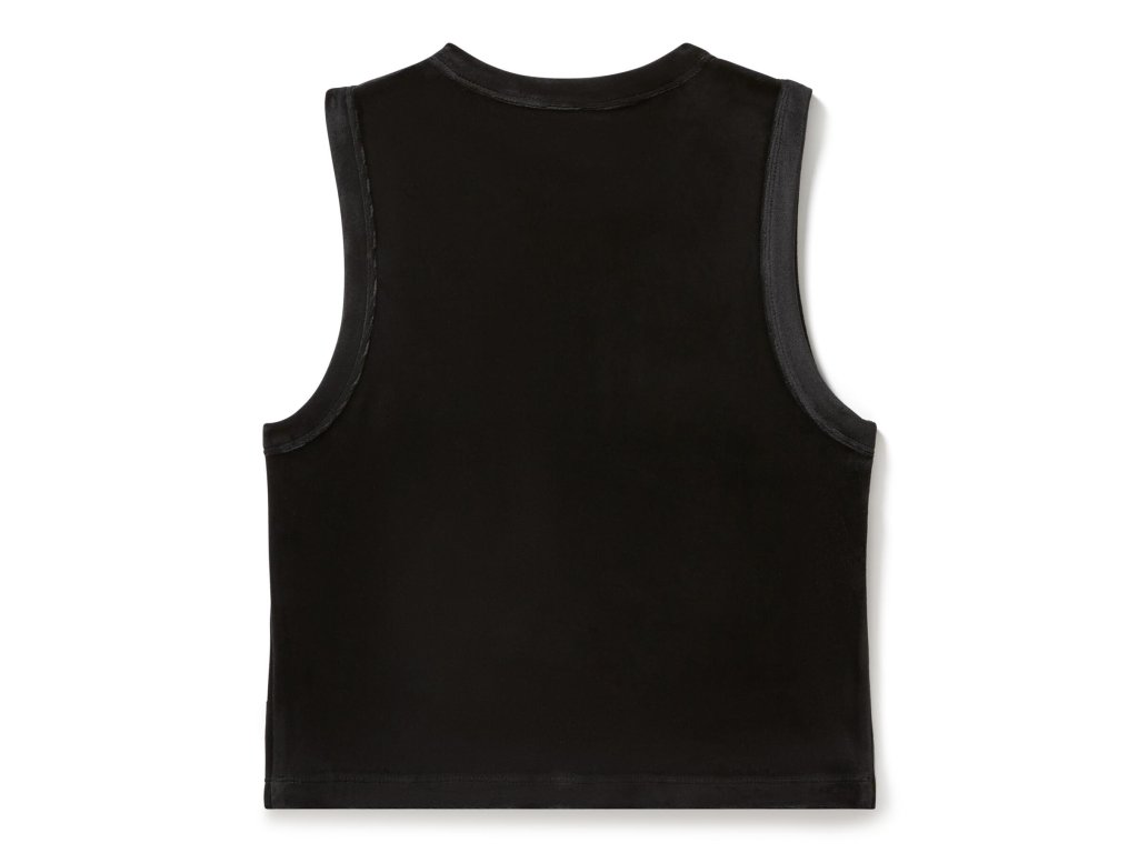 V našom velúrovom tielku s okrúhlym výstrihom si môžete užiť zamatové pohodlie bez rukávov. Je vyrobené z ťažkého polyesterového keprového velúru s prímesou elastanu pre väčšiu pružnosť. Toto dámske tielko v skrátenej, priliehavej siluete sa vyznačuje širokým lemovaným výstrihom. Predné potlačené nápisy sú zdobené lesklou výšivkou v tóne, ktorá mu dodáva decentný vzhľad Harley-Davidson®. Materiály: 95 % polyester, 5 % elastan, ťažký keprový velúr. Detaily dizajnu: vysoký výstrih so širokým lemom, skrátená dĺžka a priliehavá silueta. Grafika: lesklé tónované priame vyšívanie. Ďalšie informácie: 50 cm od vrchu ramena po spodný lem (veľkosť M). Farba: čiernaBuďte prvý, kto napíše príspevok k tejto položke.
