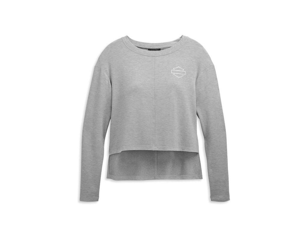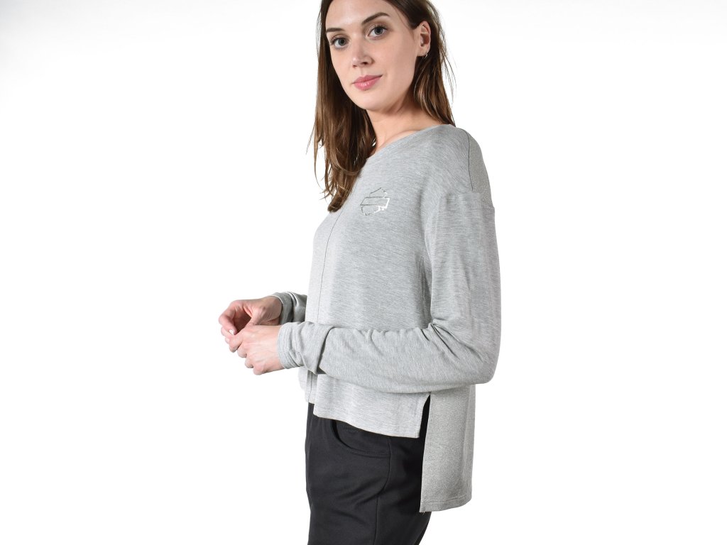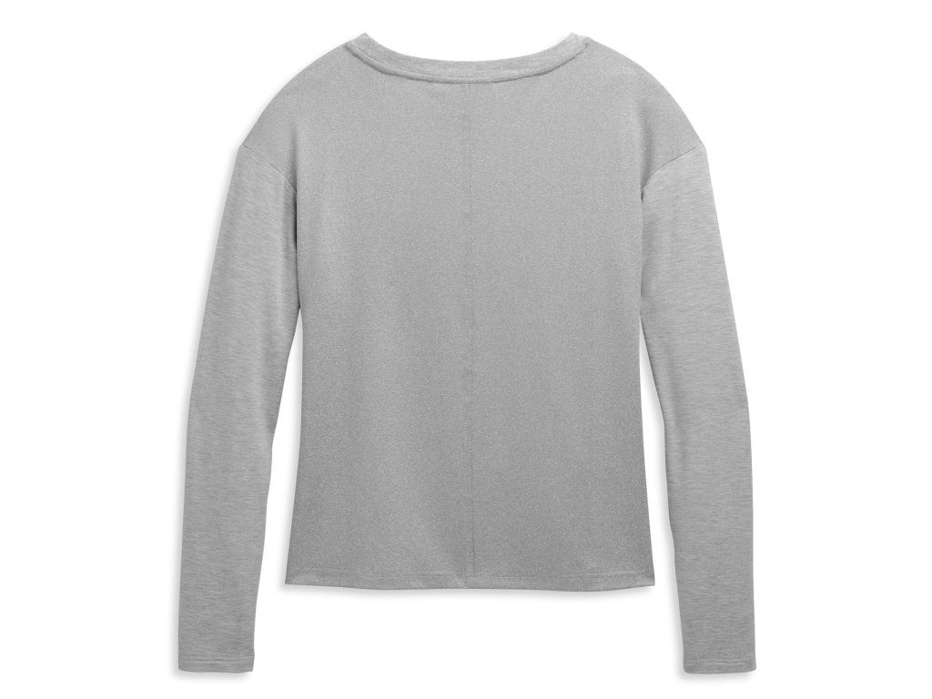 Dámske tričko s dlhým rukávom a s metalickým 3D logom Harley-Davidson® potlačeným vpredu. Predĺžený zadný diel z funkčného priedušného materiálus metalickou úpravou. farba: sivá, materiál: 95% Rayon, 5% Spandex French Terry, zadný diel - 96% Polyester, 4% Spandex Metallic Print JerseyDiskusia