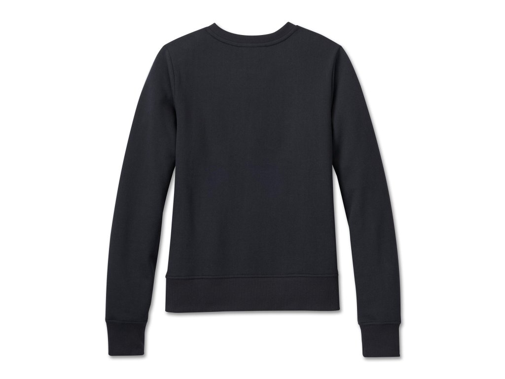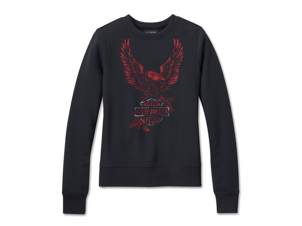 Dámsky pulóver s kontrastnou grafikou orla a loga Harley-Davidson® potlačená vpredu. Farba: čierna Materiál: 60% bavlna, 40% polyester fleece.