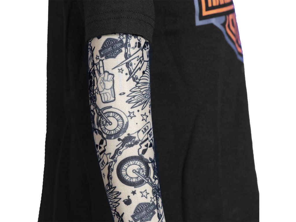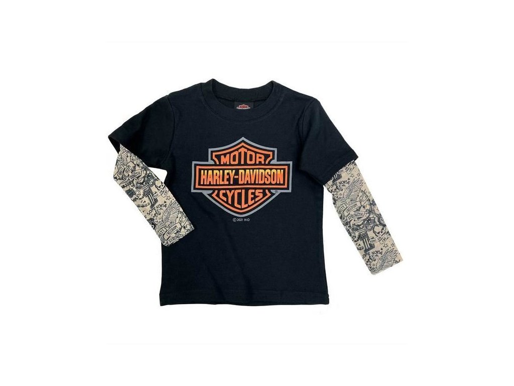 Pripravte svojho malého motorkára na jazdu s tričkom Harley-Davidson Bar & Shield Mesh Tattoo s dlhým rukávom! Toto tričko je vyrobené z mäkkého a pohodlného materiálu, má na prednej strane jasne oranžové logo Bar & Shield a elastické sieťované rukávy s potlačou tetovaní pre pravý motorkársky vzhľad. Ideálny kúsok pre malých fanúšikov Harley-Davidson®. Materiál: vyrobené zo 60 % bavlny a 40 % polyesteruBuďte prvý, kto napíše príspevok k tejto položke.