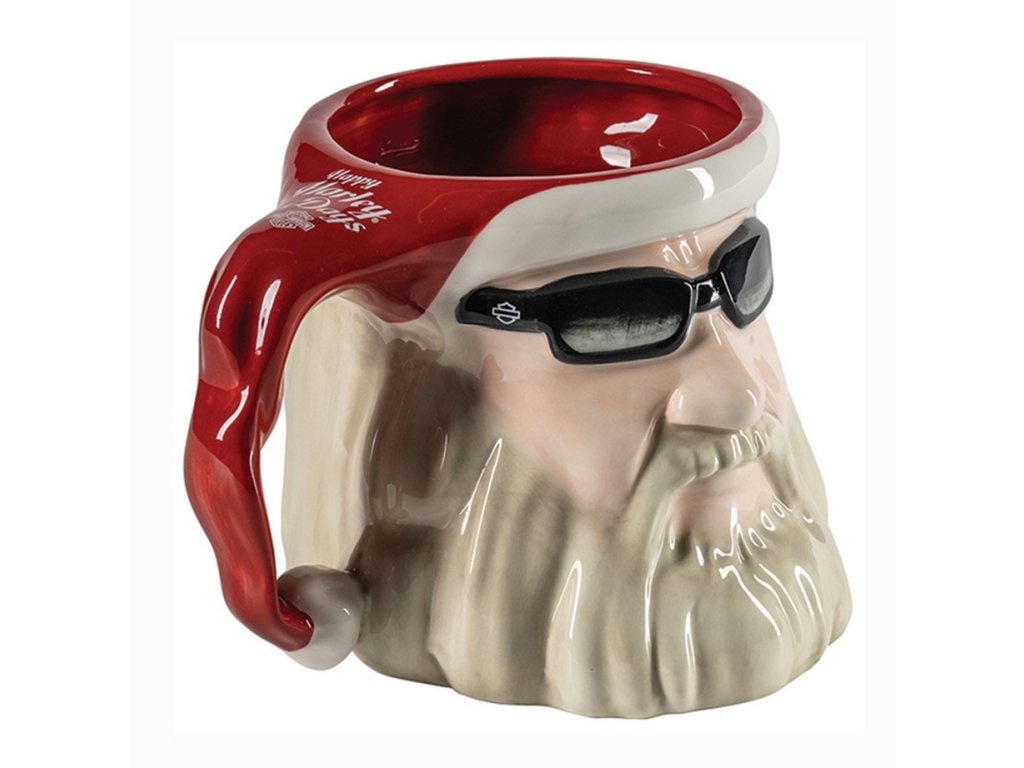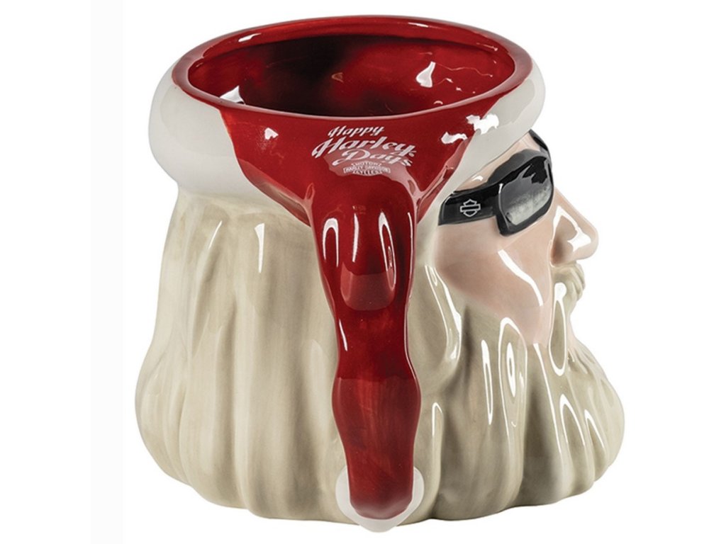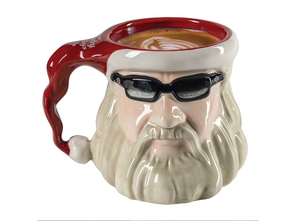 Tematicky keramický hrnček s motívom motorkárskeho Santa Clausa Harley-Davidson