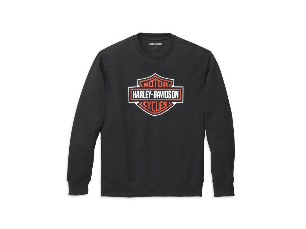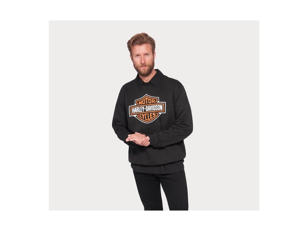 Pánska mikina bez kapucne s vnútornou fleece úpravou a s potlačeným farebným logom Harley-Davidson® vpredu. Farba: čierna, Materiál: 60% bavlna, 40% polyester Fleece