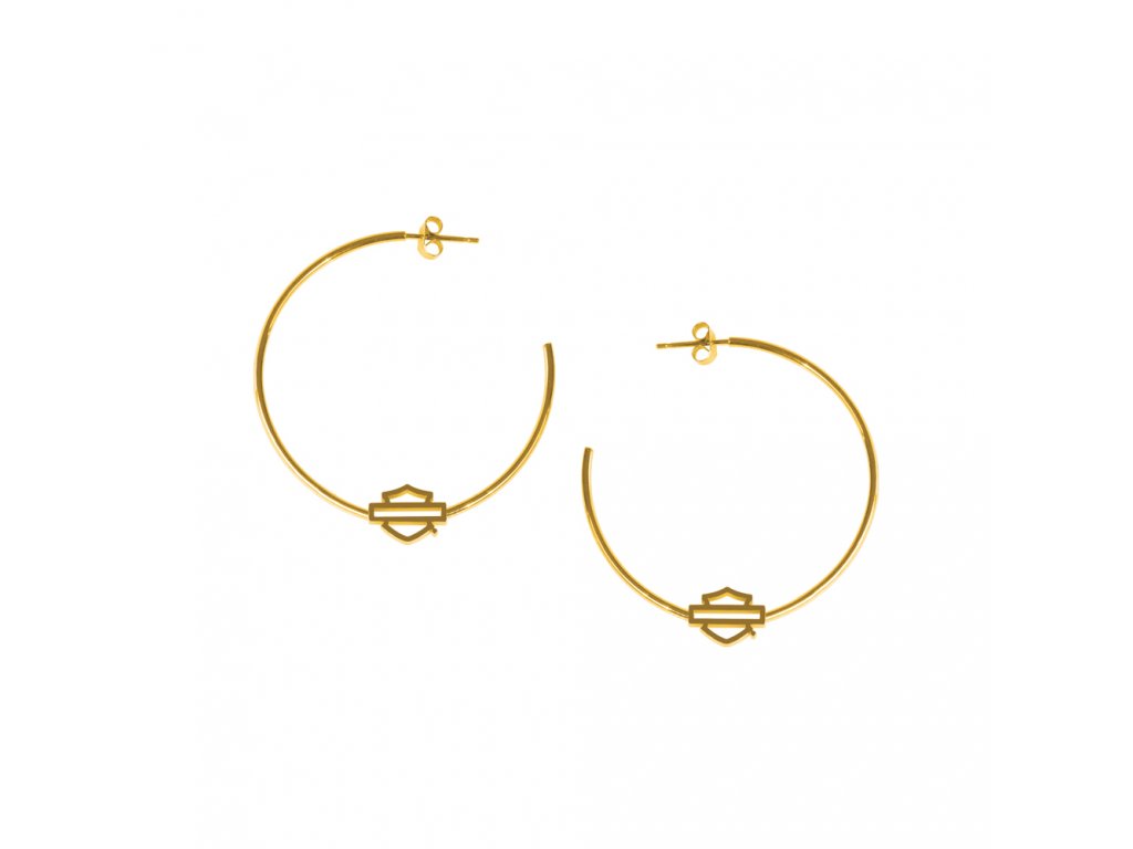 Okrúhle náušnice s Bar & Shield logom Harley-Davidson® z nehrdzavejúcej ocele v zlatom farebnom prevedení. materiál: stainless steel, rozmer náušnice: priemer 4,45 cm