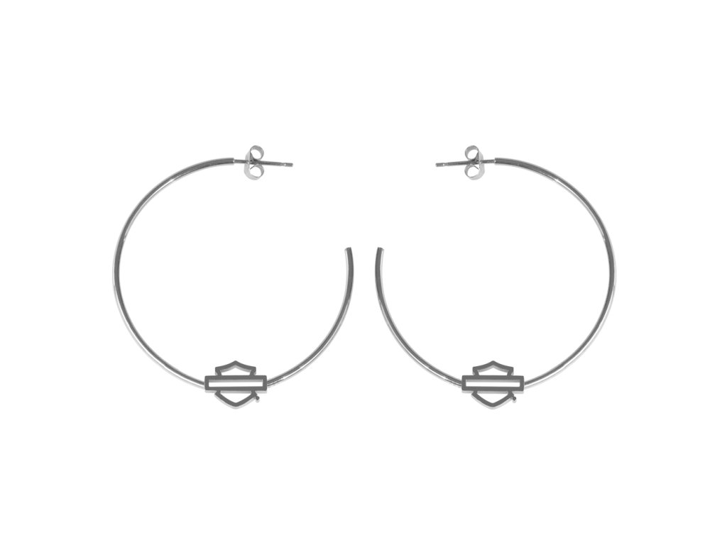 Okrúhle náušnice s Bar & Shield logom Harley-Davidson® z nehrdzavejúcej ocele v striebornom farebnom prevedení. materiál: stainless steel, rozmer náušnice: priemer 5,00 cm