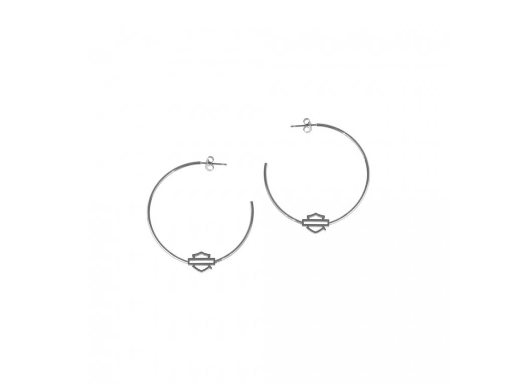 Okrúhle náušnice s Bar & Shield logom Harley-Davidson® z nehrdzavejúcej ocele v striebornom farebnom prevedení. materiál: stainless steel, rozmer náušnice: priemer 3,75 cm