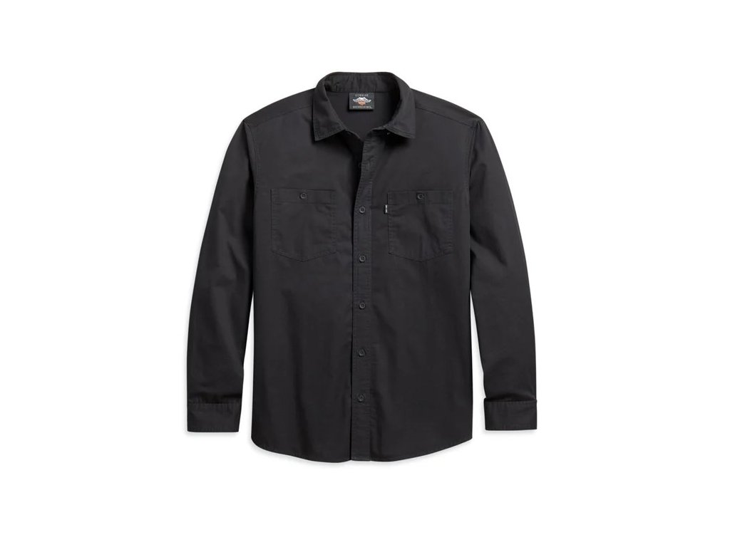 Harley-Davidson Pánska basic košeľa s dlhým rukávom.Odolná bavlna-polyesterová keprová tkanina dodáva tejto košeli s dlhým rukávom klasický strih. Materiál 60% Bavlna, 40% Polyester Twill. Predný diel na gombíky a manžety, náprsné vrecká na hrudi, golier na zapínanieBuďte prvý, kto napíše príspevok k tejto položke.
