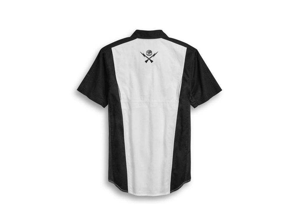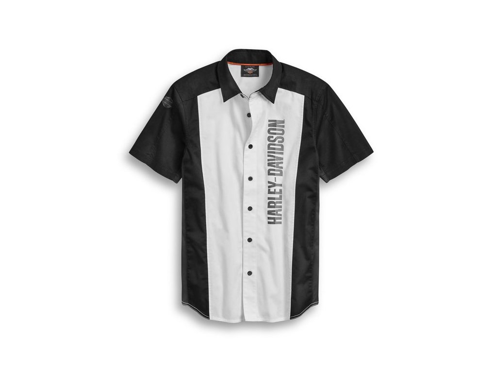 Pánska dvojfarbená bavlnená košeľa s krátkymi rukávmi,s ľavým náprsným vreckom a so zapínaním. Dvojfarebný horizontálny prestrih na hrudi po celom obvode košele. Zapínanie košele na kovové gombíky s gravírovaným nápisom Harley-Davidson®. Kontrastné Bar&Shield logo Harley-Davidson® nad náprsným vreckom a potlačená kontrastná grafika Harley-Davidson® vzadu na chrbte. Materiál: 100% bavlnený praný twillDiskusia