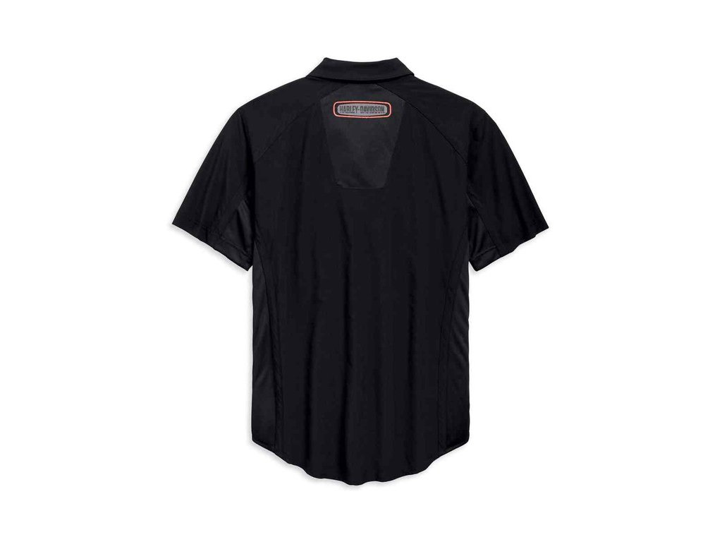 Pánska košeľa Harley-Davidson® s rýchloschnúcimi vlastnosťami ktoré odvádzajú vlhkosť od tela a tak pomáhajú regulovať telesnú teplotu. Sieťované podpazušie, chrbát a bočné panely. Goliér na zapínanie a gombíky vpredu. Náprsné vrecká s chlopňou na gombík. Pre ľahký pohyb a rozsah pohybu obsahuje dotyk spandexu. Materiál: 92% polyester a 8% spandex.Diskusia