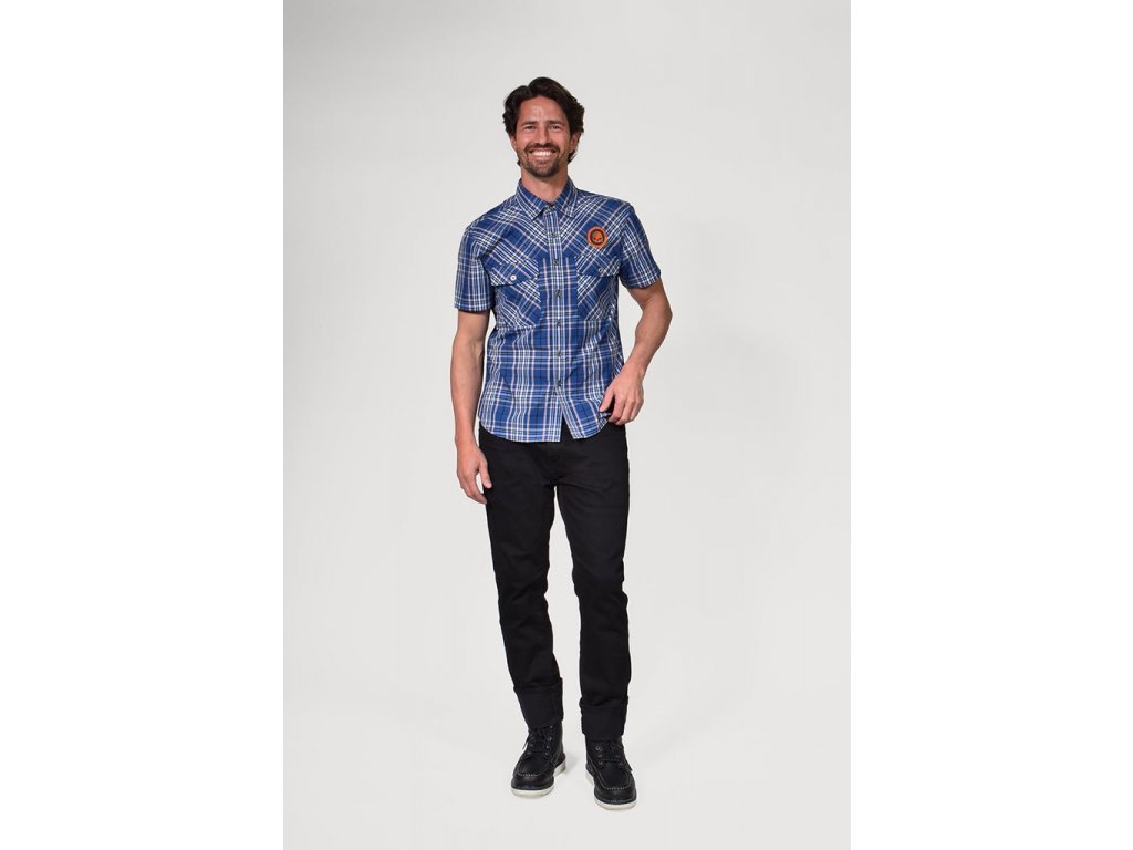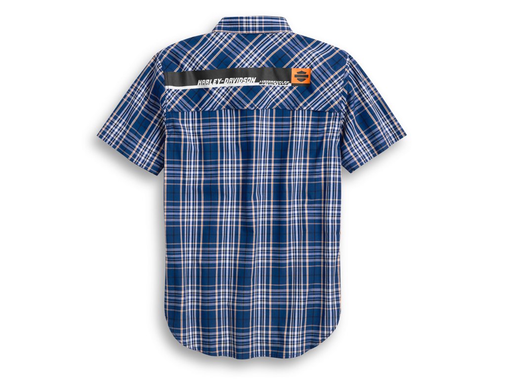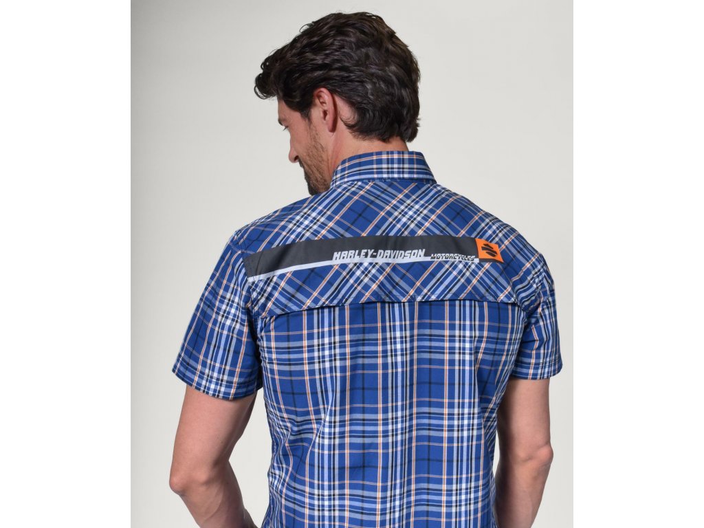 Pánska funkčná károvaná košeľa s krátkymi rukávmi a náprsnými vreckami. Otvory na chrbte májú ventilačnú funkciu a zabezpečujú prúdenie vzduchu. Kontrastné potlače loga Willie G Skull Harley-Davidson® nad ľavým náprsným vreckom a veľká potlečená grafika s nápisom Harley-Davidson® na chrbte. Zapínanie na kovové gombíky. Farba: modrá Materiál: 60% bavlna, 40% sfarben=a polyesterová priadzaDiskusia