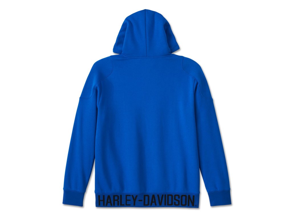 Pánska mikina s predným klokankovým vreckom a kontrastnou kapucňou. Táto mikina má fleecovú vnútornú úpravu pre pohodlie aj počas chladnejších dní. Kontrastné vyšívané logo Harley-Davidson® vpredu a vpletaný kontrastný nápis Harley-Davidson® na spodnej manžete. Farba: modrá Materiál: 60% bavlna, 40% polyester fleeceDodatočné parametre
