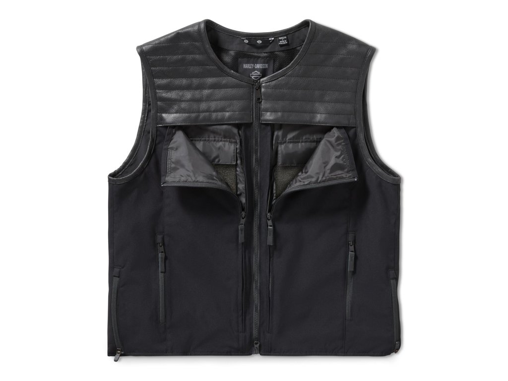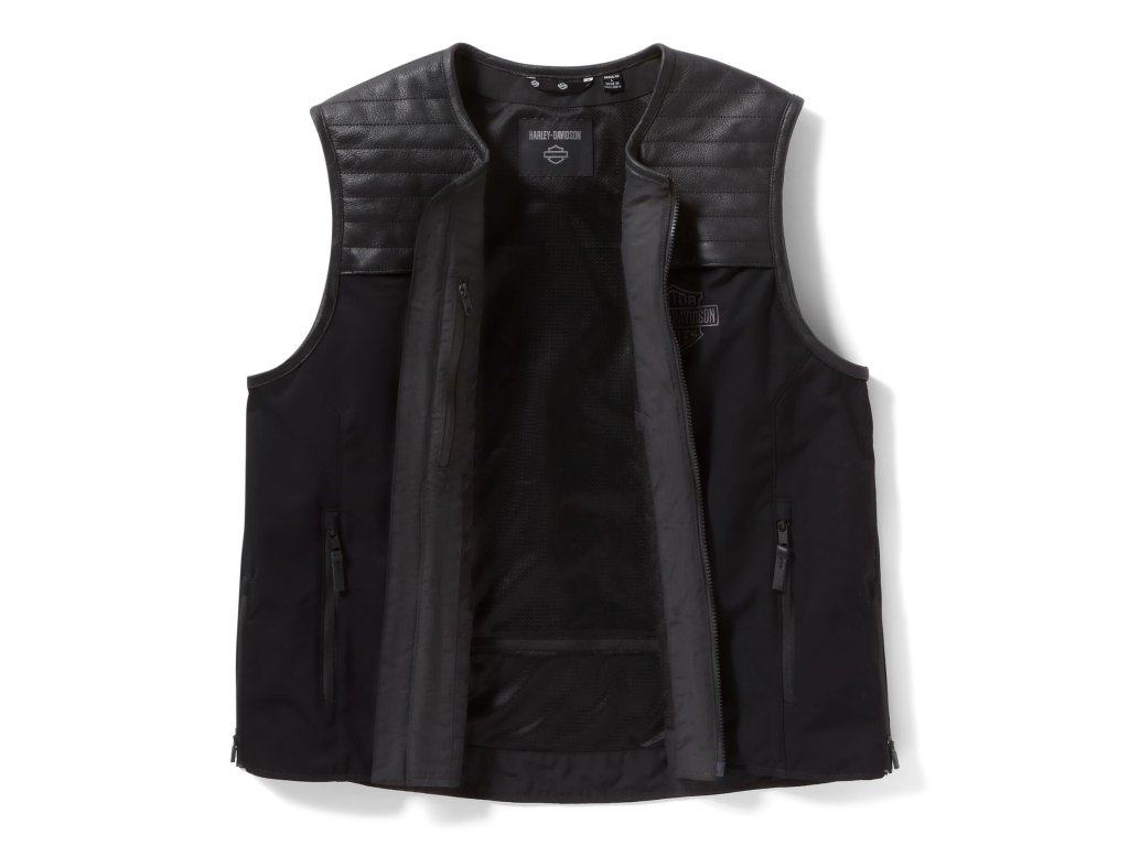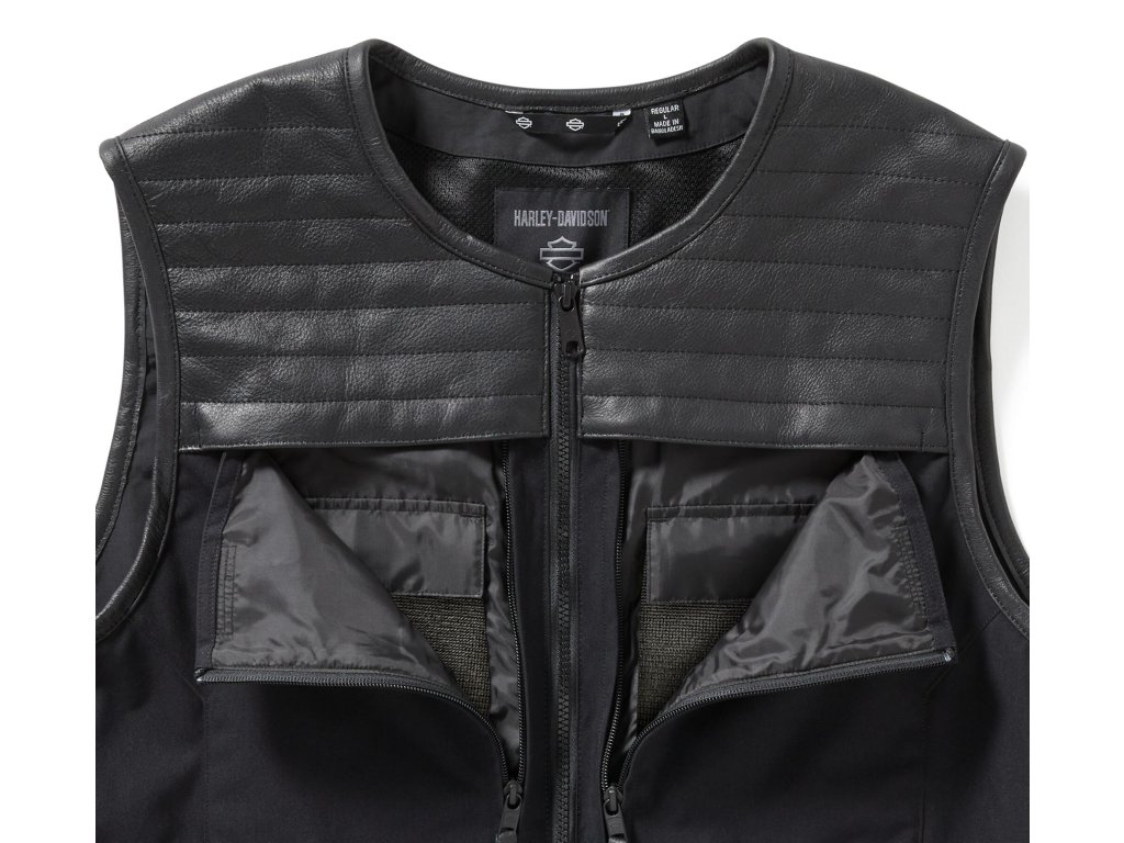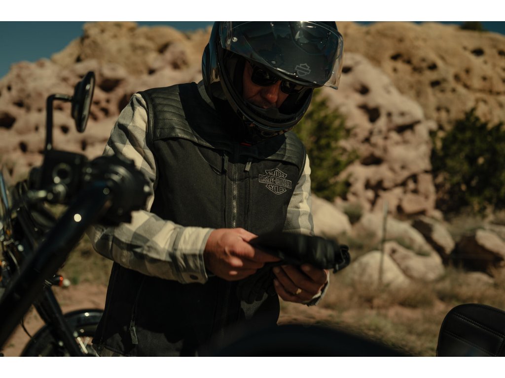 Pánska vesta Harley-Davidson Long Haul Utility spája rozumný a štýlový dizajn. Je vyrobená z odolnej zmesi ťažkého nylonu a hovädzej kože s ľahkou sieťovou podšívkou. Vďaka obojsmernému zipsu vpredu a koženému golieru sa nosí pohodlne a ľahko. Vesta má tiež reflexné lemovanie pre lepšiu viditeľnosť a švy na páse na zips pre lepšie prispôsobenie. Jej najväčšou výhodou je však úložný priestor – celá predná časť ma skryté vrecká na zips na usporiadanie vašich nevyhnutností. Vpredu a vzadu je vyšívaná výšivkou pre nenápadný no nadčasový Harley vzhľad. Materiál: 100% nylon s ťažkou plátnovou väzbou (telo), stredne ťažká hovädzia koža (ramená), podšívka zo 100% polyesterovej sieťoviny.Buďte prvý, kto napíše príspevok k tejto položke.