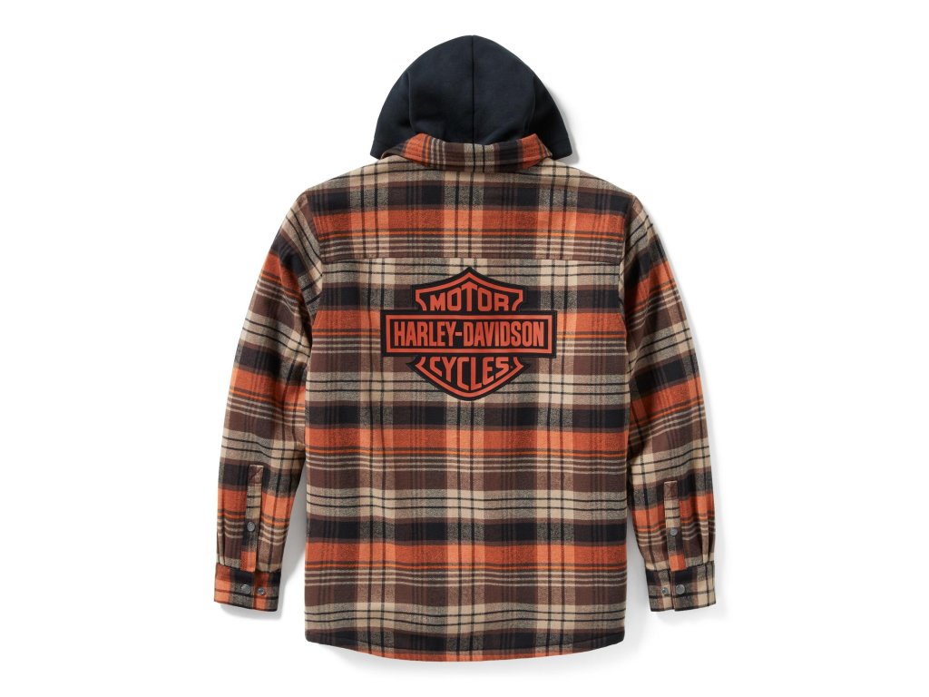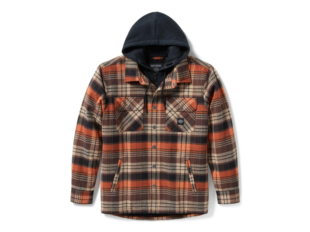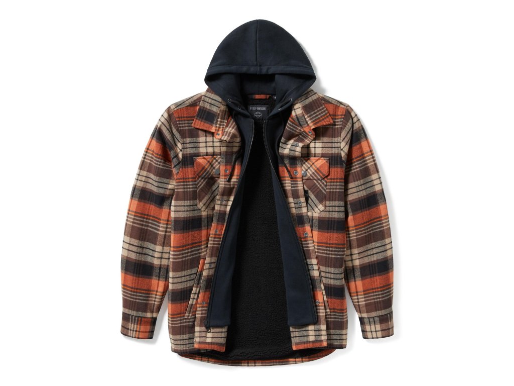 Vykročte von v pohodlí a drsnom štýle s košeľovou bundou Harley-Davidson Traveller. Tento hybridný kúsok spája štruktúrovaný vzhľad košele s možnosťou vrstvenia bundy – ideálny na prechodné počasie. Dvojfarebný dizajn v čiernej a hnedej farbe pre nadčasovú estetiku inšpirovanú motorkou. Odolná vonkajšia konštrukcia s dostatočnou hmotnosťou na blokovanie vetra, no zároveň pohodlne dýcha. Pripevnená kapucňa pre dodatočnú ochranu pred ľahkým dažďom alebo vetrom. Zapínanie na zips po celej dĺžke s gombíkmi pre extra bezpečnosť. Viaceré vrecká na hrudi a ruky pre funkčnosť a štýl. Materiál: 100 % bavlna, ťažká česaná keprová priadza. Podšívka: 100 % polyester Sherpa. Podšívka rukávov: 100 % polyesterový taft s ľahkou poly výplňou.Dodatočné parametre