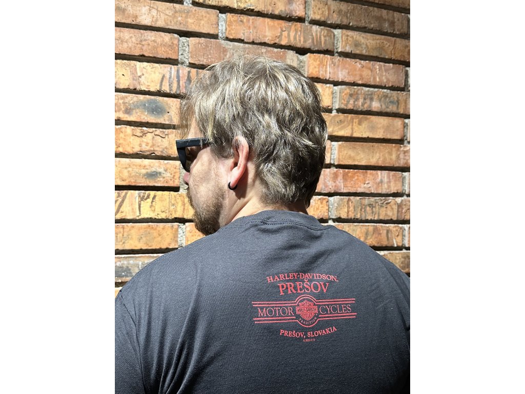 Pánske dealerské tričko s krátkym rukávom s vianočnou grafikou Harley-Davidson® vpredu a s dealerskou grafikou Harley-Davidson® Prešov na chrbte. farba: čierna materiál: 100% bavlnaDodatočné parametre