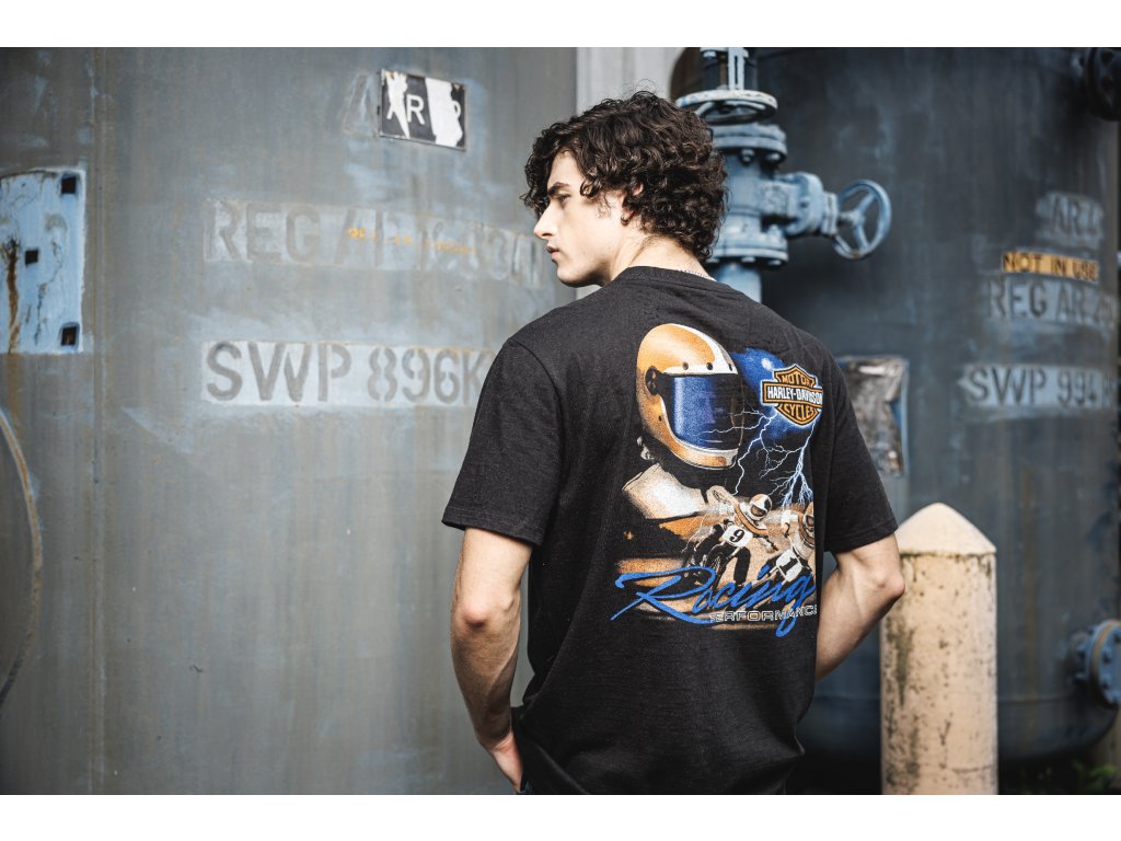 V tejto limitovanej edícií, ožíva adrenalínový výkon z našej pretekárskej éry sedemdesiatych rokov. Tričko Harley-Davidson® Night Rider je vyrobené z bavlneného džerseja ktorý ponúka uvoľnený strih. Toto pánske tričko je dokončené s naším najvýznamnejším logom vredu a zadným dizajnom inšpirovaným pretekárskymi obrázkami z našich archívov. Materiál: 100% bavlnený džersej strednej gramáže. Rebrovaný výstrih. Jemná podtlač.Buďte prvý, kto napíše príspevok k tejto položke.