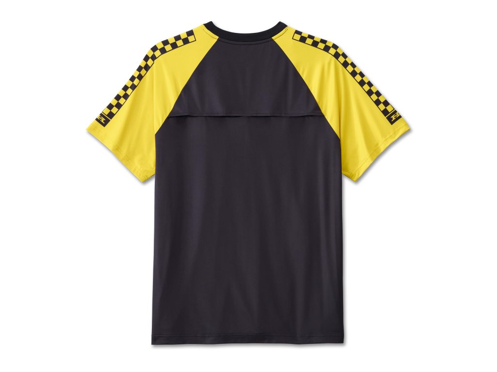 Pánske funkčné tričko s kontrstným potlačeným logom Harley-Davidson® a s Racing grafikou na krátkych raglanových rukávoch. Praktický vetrací krytý otvor zo sieťoviny po celej šírke chrbta. Materiál: 88% polyester, 12% spandex jerseyDiskusia