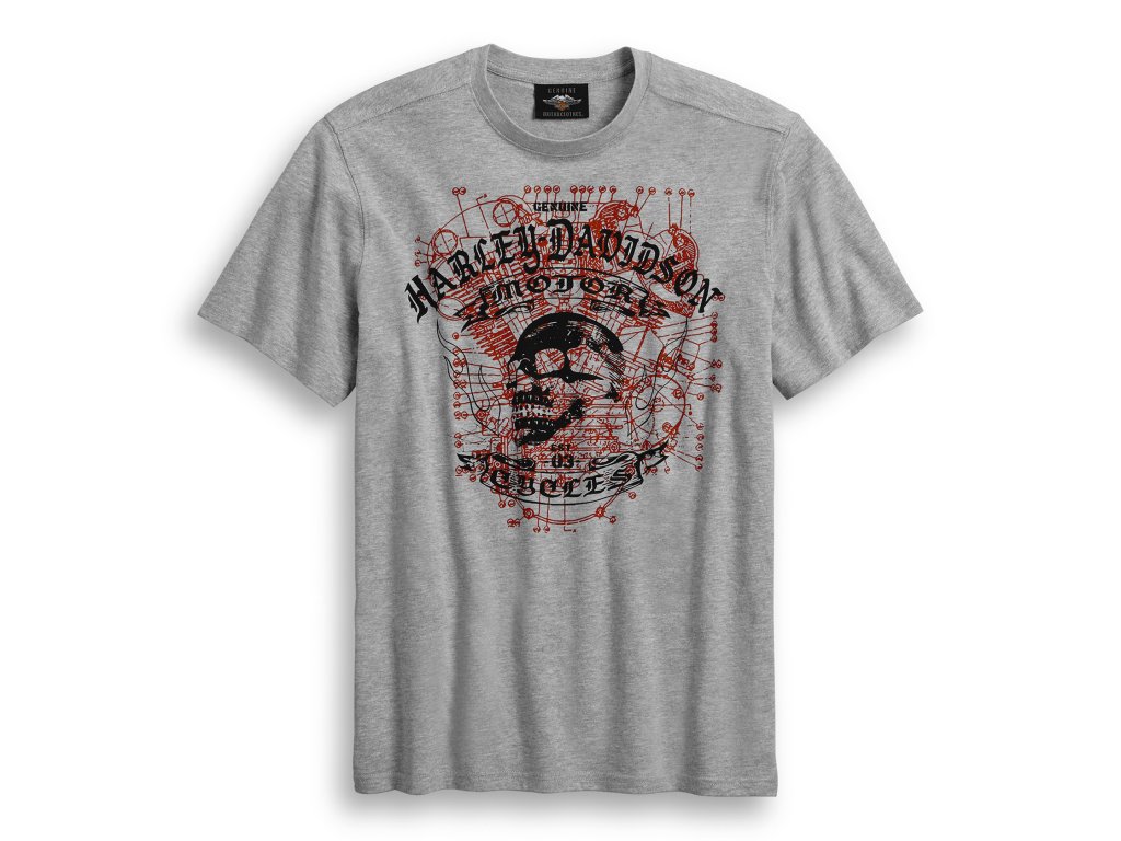 Pánske bavlnené tričko s krátkym rukávom s grafikou Harley-Davidson® Skull na hrudi. Materiál: 100% bavlnený jersey