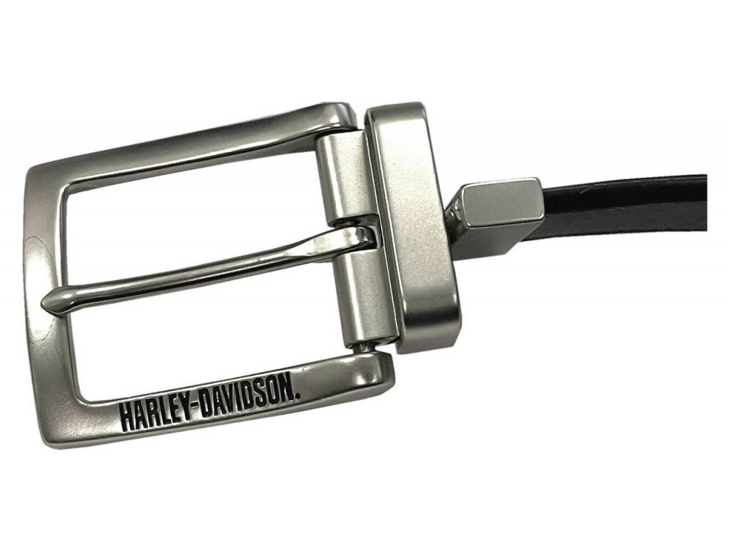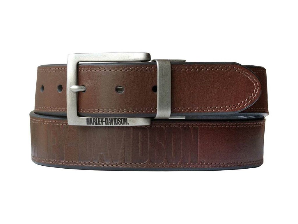Pánsky obojstranný kožený opasok s embosovaným nápisom Harley-Davidson® po obvode na čiernej aj hnedej strane. Embosovaný kontrastný nápisom Harley-Davidson® na kovovej pracke. Zmena farby/strany opaska jednoduchým otočením na pracke. Materiál: 100% koža Rozmer: šírka 3,8 cmDiskusia