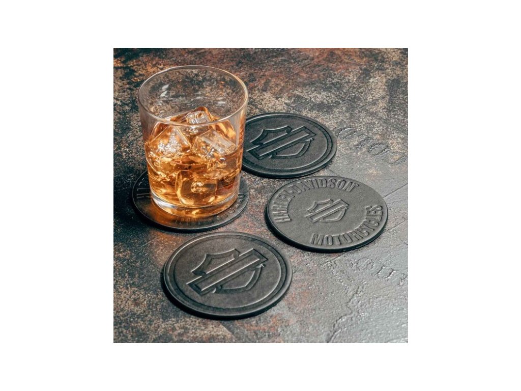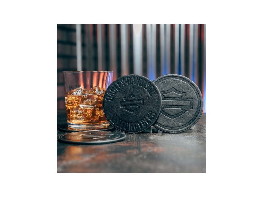 Sada štyroch podložiek pod poháre z imitácie kože s embossovaným logom Bar & Shield Harley-Davidson®. Rozmer: priemer 10 cm. Materiál: umelá koža