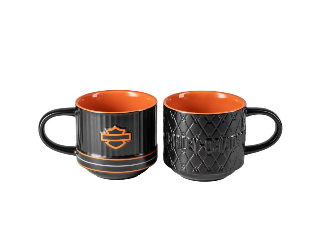 Táto sada keramických hrnčekov s logom Harley-Davidson® a objemom 420 ml obsahuje dva hrnčeky s rôznym dizajnom, ktoré sa navzájom dopĺňajú. Oba hrnčeky majú na vnútornej strane logo. Táto sada je ideálna pre pár, ktorý si nevie rady s kombináciou všetkého. Tieto hrnčeky sú vhodné do mikrovlnnej rúry a umývačky riadu. Materiál: keramika. Objem: 2x 420ml.Buďte prvý, kto napíše príspevok k tejto položke.